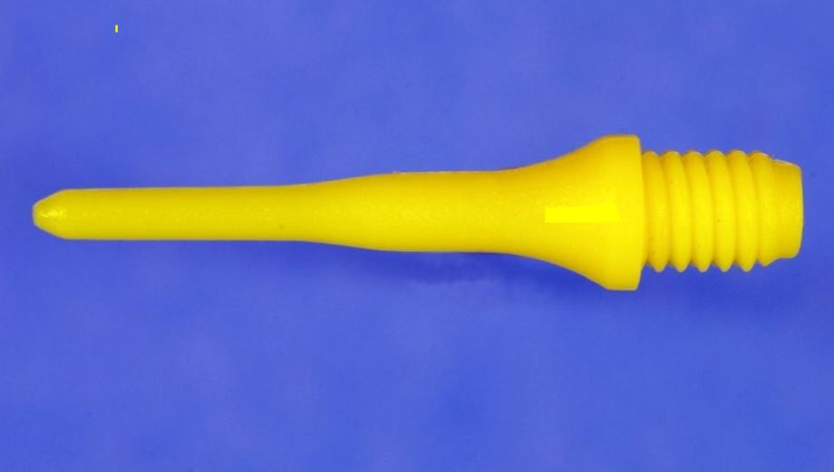 Hroty Cyber TUFFLEX krátké žluté neon jsou hroty z plastu, vyráběné v mnoha barvách a jednom provedeních délky - 21 mm s úzkým závitem 2BA.